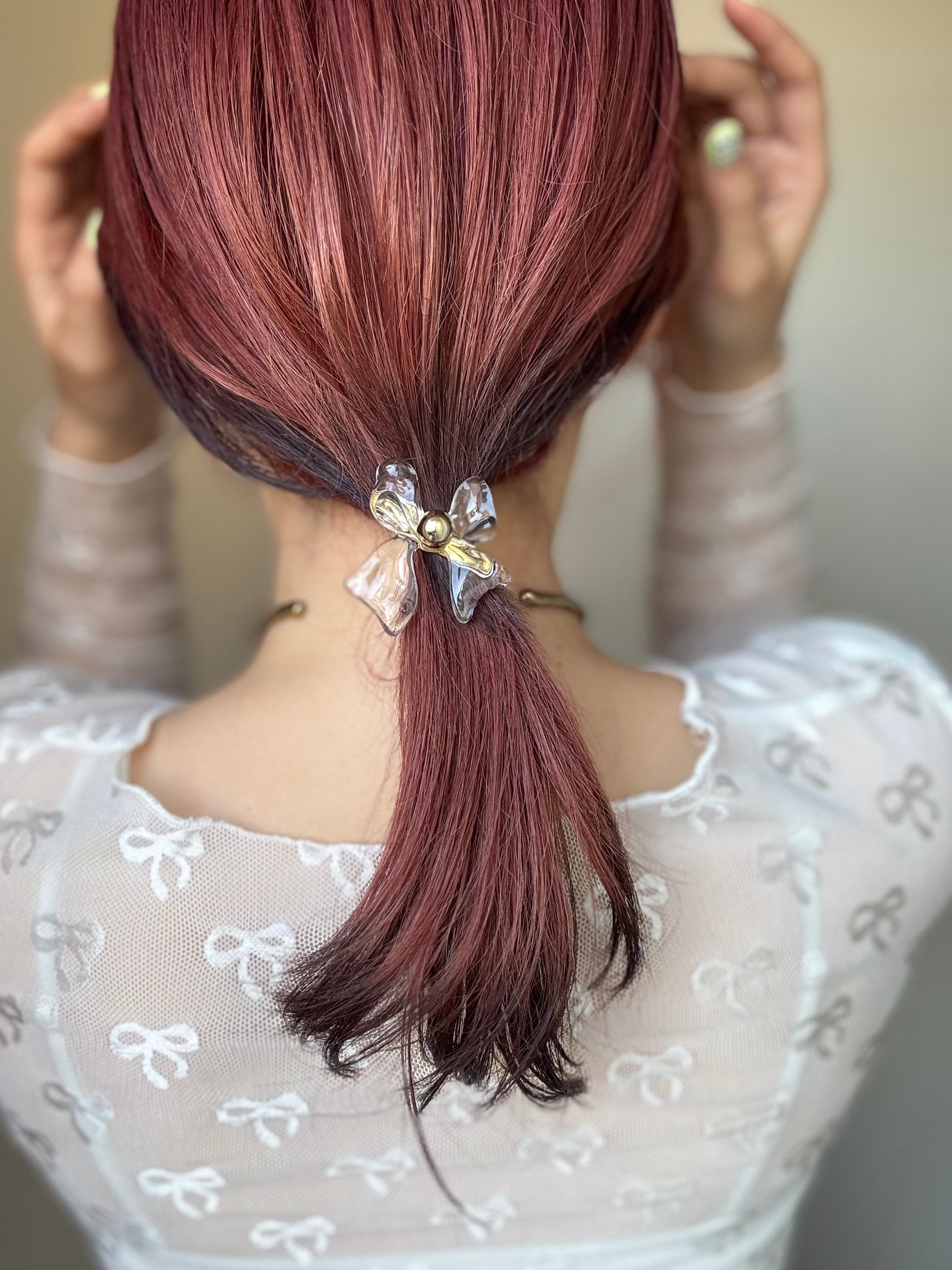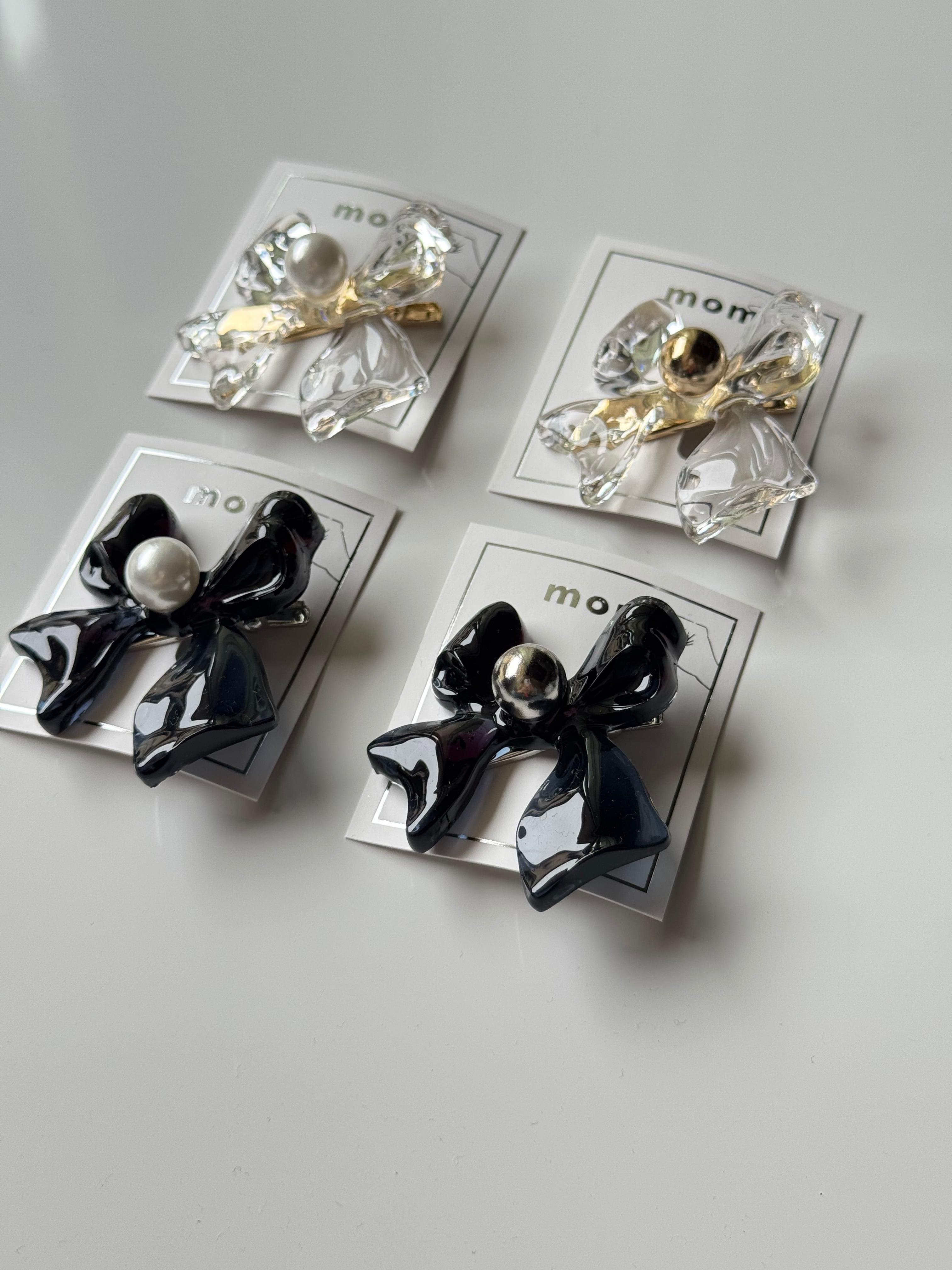 二液性樹脂でお作りしたリボンモチーフのミニヘアクリップ